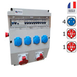 - Prises : 4 prises domestiques 16A Ph+n NF + 1 prise industrielle 16A 5P + 1 prise industrielle 32A 5P
